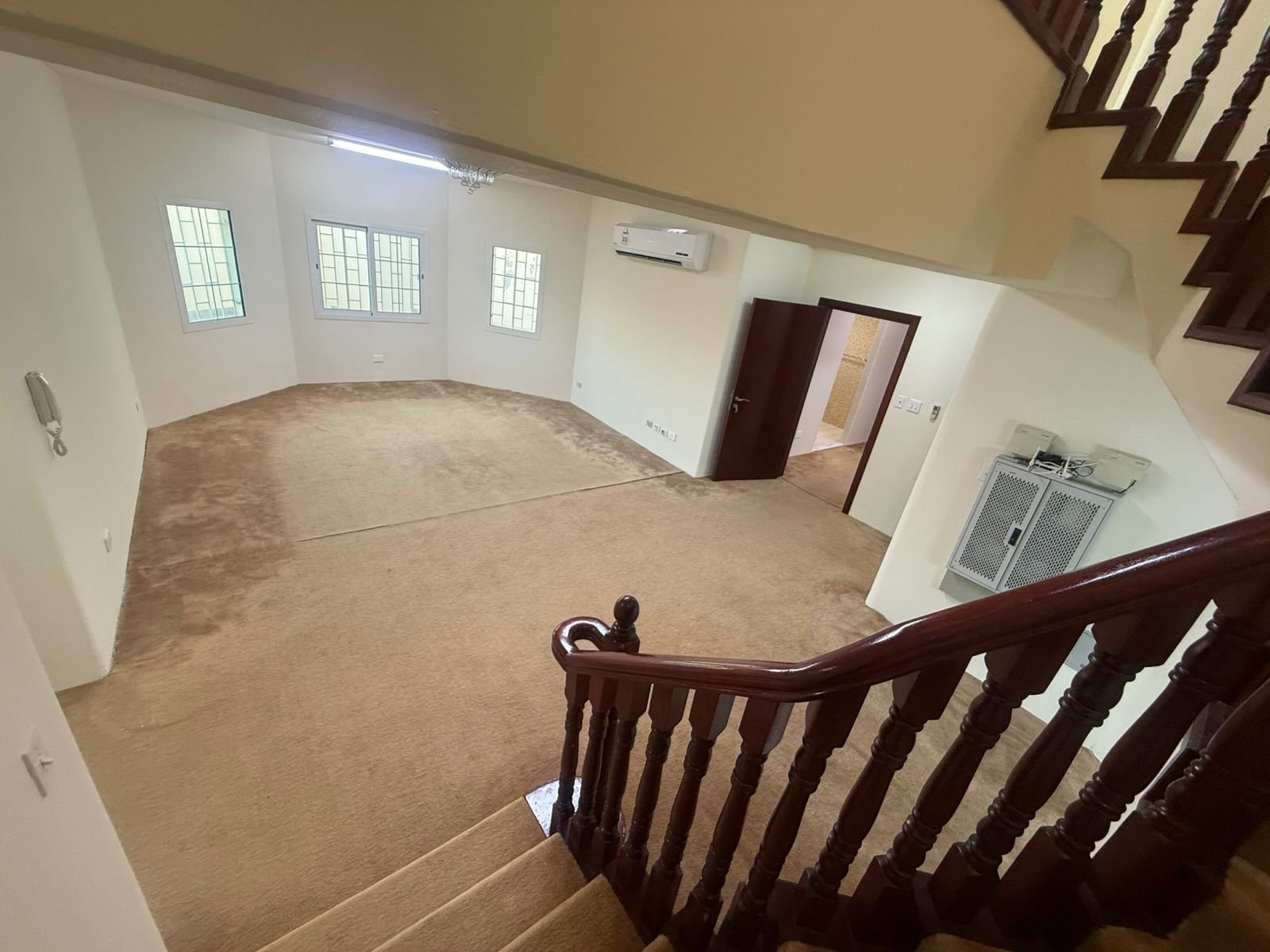 الدور الأول: 5 غرف نوم (منها ماستر) + 3 دورات مياه + غرفة صغيرة + صالة عائلية كبيرة.