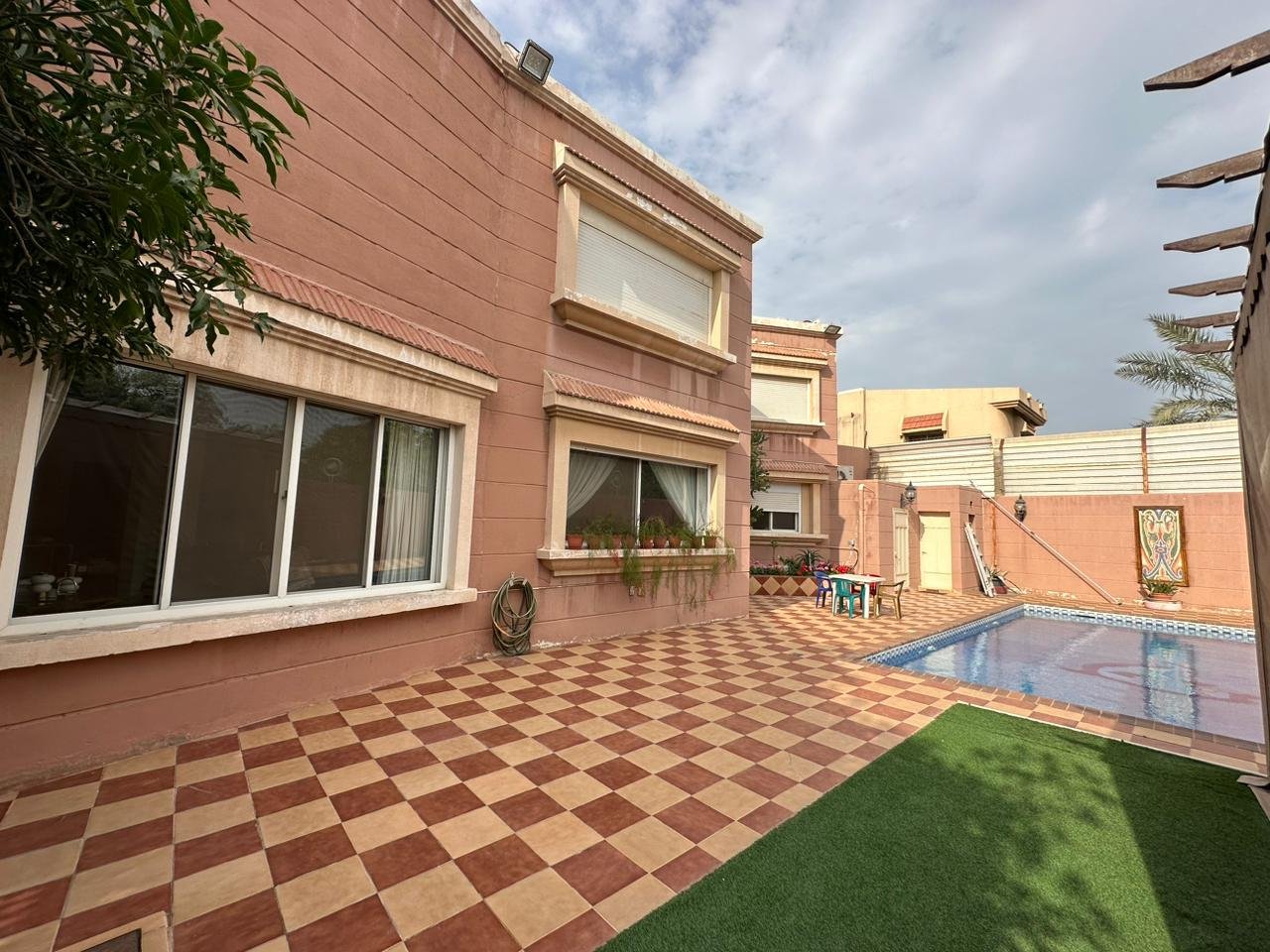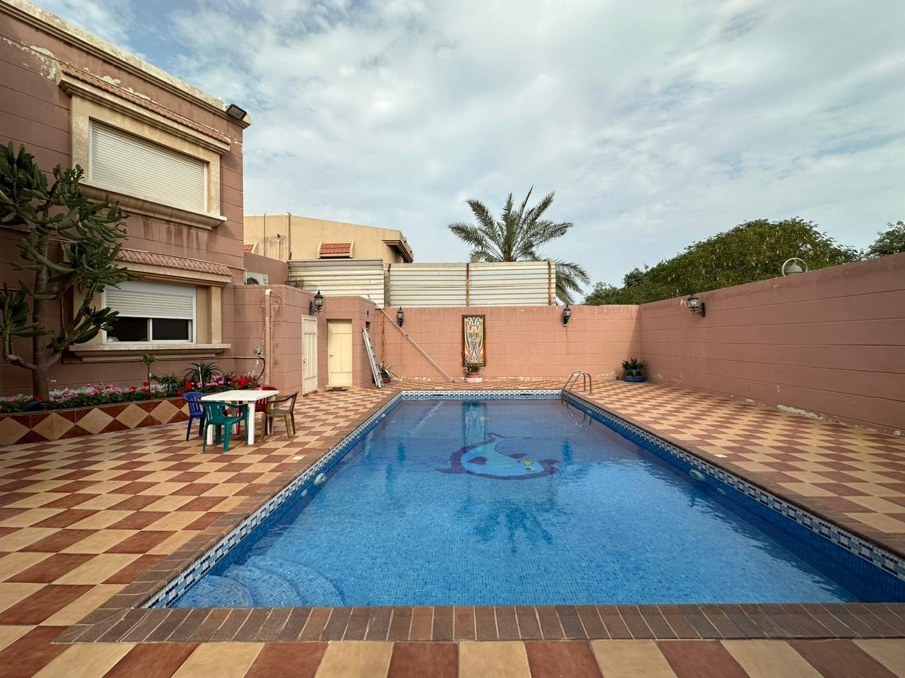 مسبح كبير (9.15 × 5 متر) مع خدمات